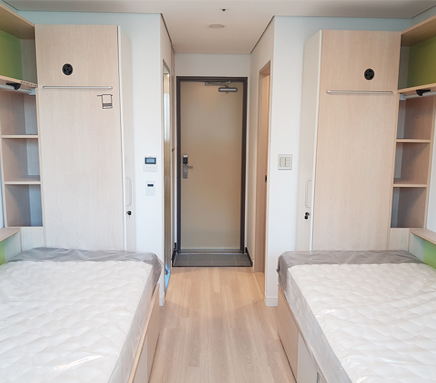 개인용침대(하단수납장포함), 책상, 옷장, 냉장고, 인터넷공유기